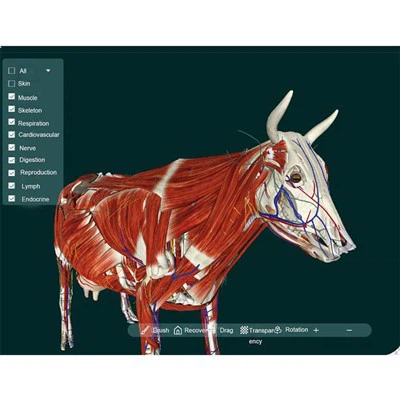 מכיל 12 מבנים אנטומיים של בעלי חיים, המכסים כל איבר ומערכת מרכזיים. מרקמים בעלי דיוק גבוה הופכים את אפקט התצוגה למציאותי יותר, וטכנולוגיית רינדור תלת מימד בזמן אמת יכולה באמת לשחזר את המבנה האנטומי של בעלי החיים, תוך מימוש השילוב המושלם של אנטומיה מסורתית וטכנולוגיית מציאות מדומה.